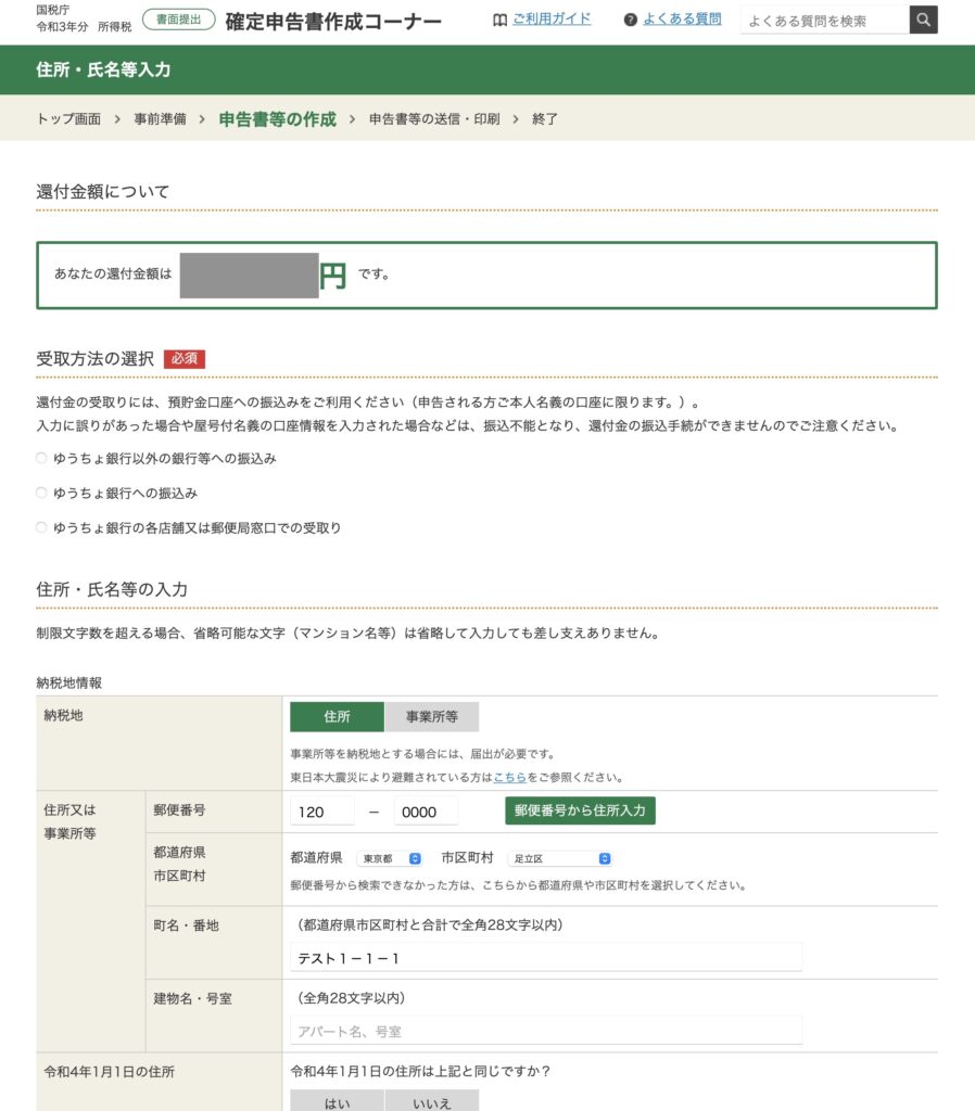住所や氏名等の入力です。入力に迷いそうな項目のみ下記に記載しておきます。
